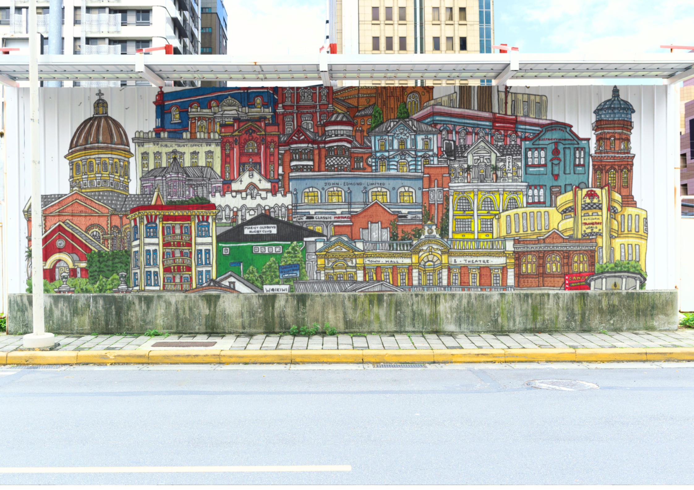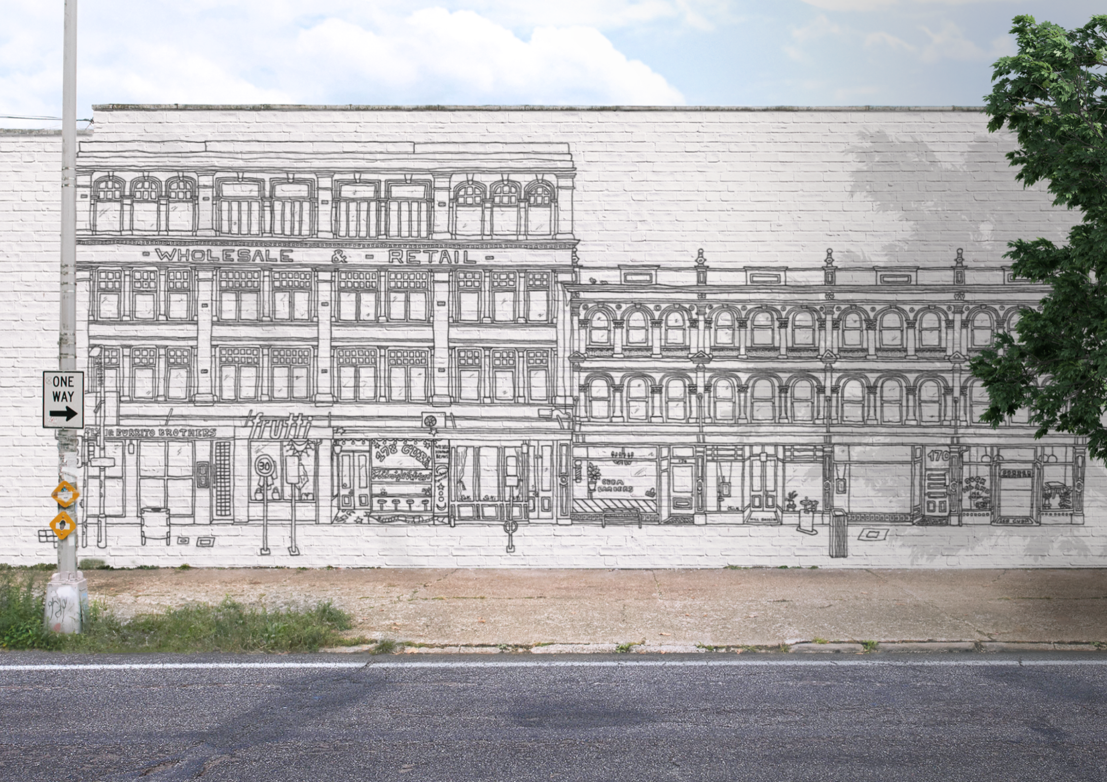 From there, I design a composition that reflects identity—whether that’s a detailed streetscape, abstracted architectural forms, or a single building of significance. When commissioning a mural, you’ll receive: