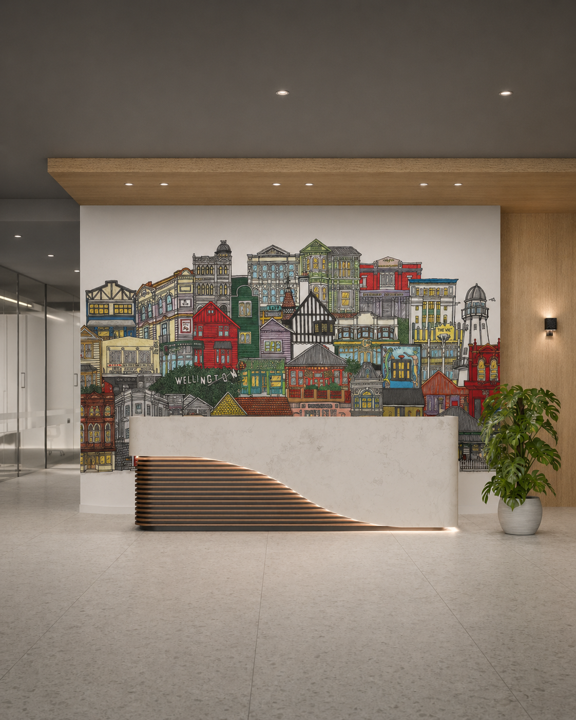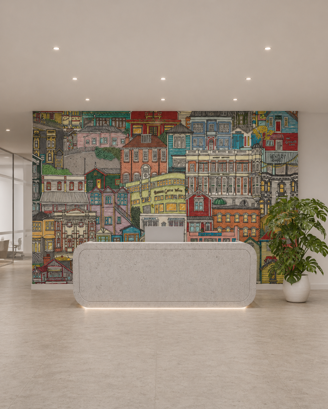 Turn everyday workspaces into bold, welcoming environments that reflect your brand and culture. A mural here sets the tone immediately—making clients feel impressed and teams feel connected to the space.